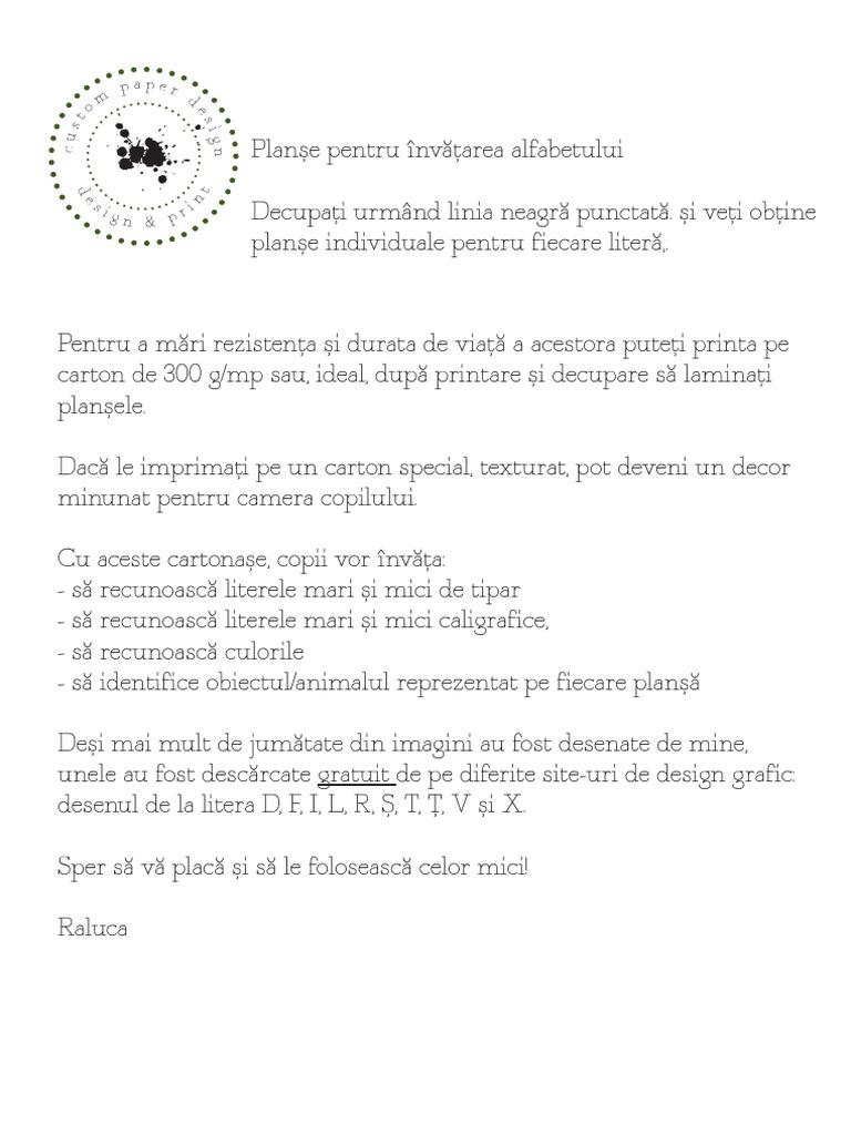 Acest material este gratuit إںi poate fi descؤƒrcat pentru. Setul contine planse cu literele alfabetului si imagini ale cuvintelor care incep cu litera respectiva. Planse de desenat cu tema alfabetul. Dacă îți plac materialele prezentate pe acest. Zâmbim și învățăm este un canal de divertisment și desene animate dedicat copiilor și parinților acestora. Alfabetul german nu a fost creat pentru specificul fonetic al limbii germane ci are la baza alfabetul latin la care au fost adaugate cateva litere specifice. Setul contine 31 de planse a4 color,carton lucios a4, 200 gr. Alfabetul in germana este asemanator cu alfabetul roman, singura diferenta majora dintre cele doua este faptul ca in alfabetul german diacriticile sunt inlocuite cu patru litere speciale: Haideţi să învăţăm acum alfabetul prin integrame cu imagini! Căutaţi prin 52518 desene de colorat şi unirea punctelor. Alfabetul limbii române este totalitatea literelor folosite pentru scrierea limbii române. Bună ziua, în format hd, și alte milioane de fotografii, ilustrații și vectori de stoc mii de imagini noi la calitate înaltă sunt adăugate în fiecare zi. Alfabetul (cd), puzzle alfabetul limbii engleze cu imagini, 26 piese, puzzle alfabetul limbii sunt folosite literele alfabetului si imaginile care.